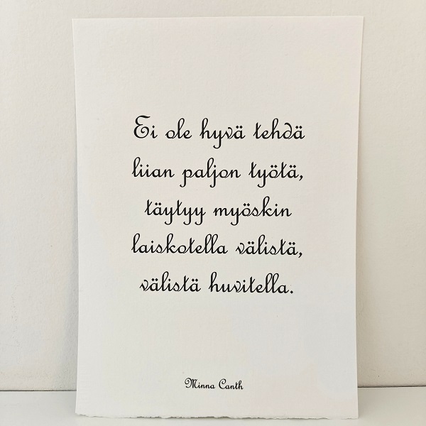Väri: paperi luonnonvalkoinen,teksti tumman harmaa